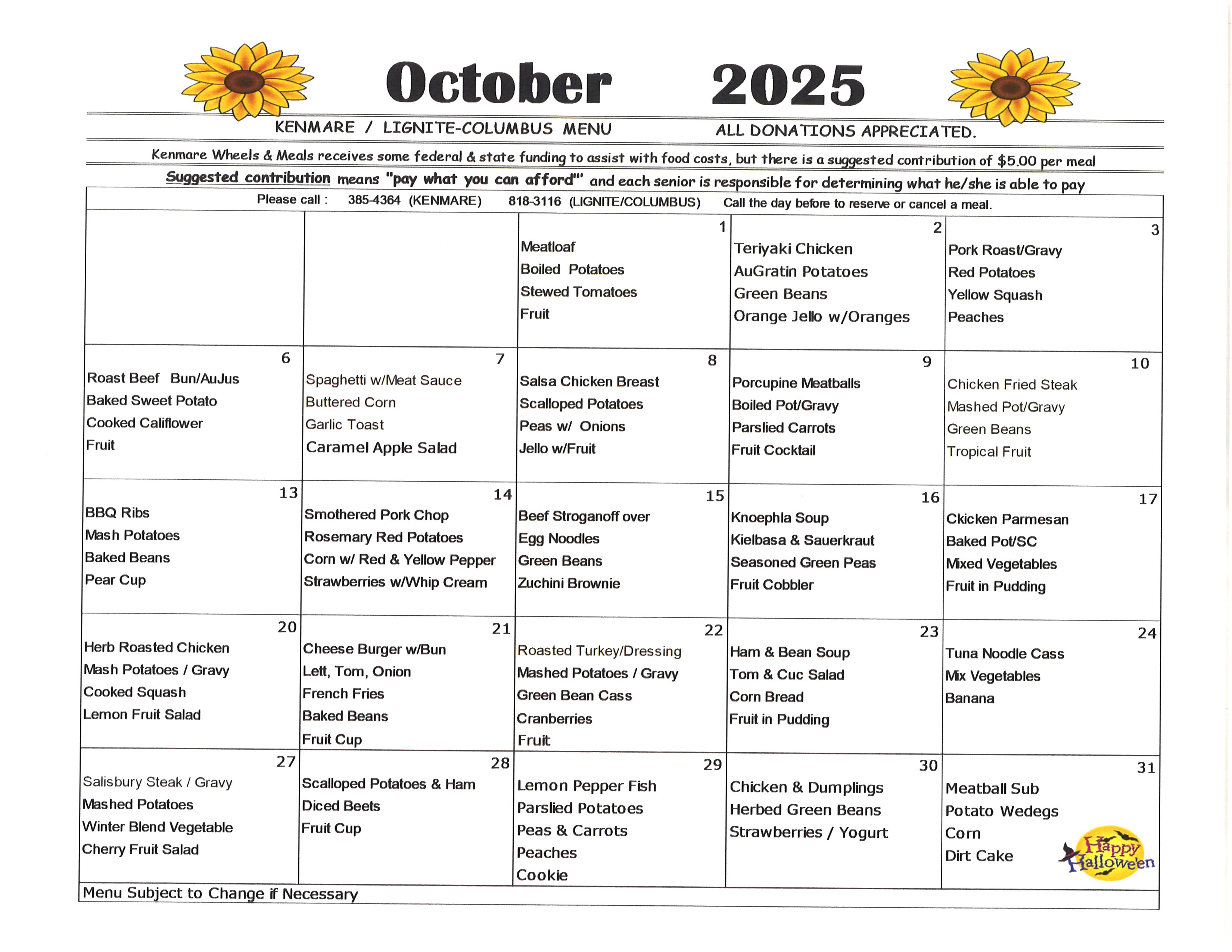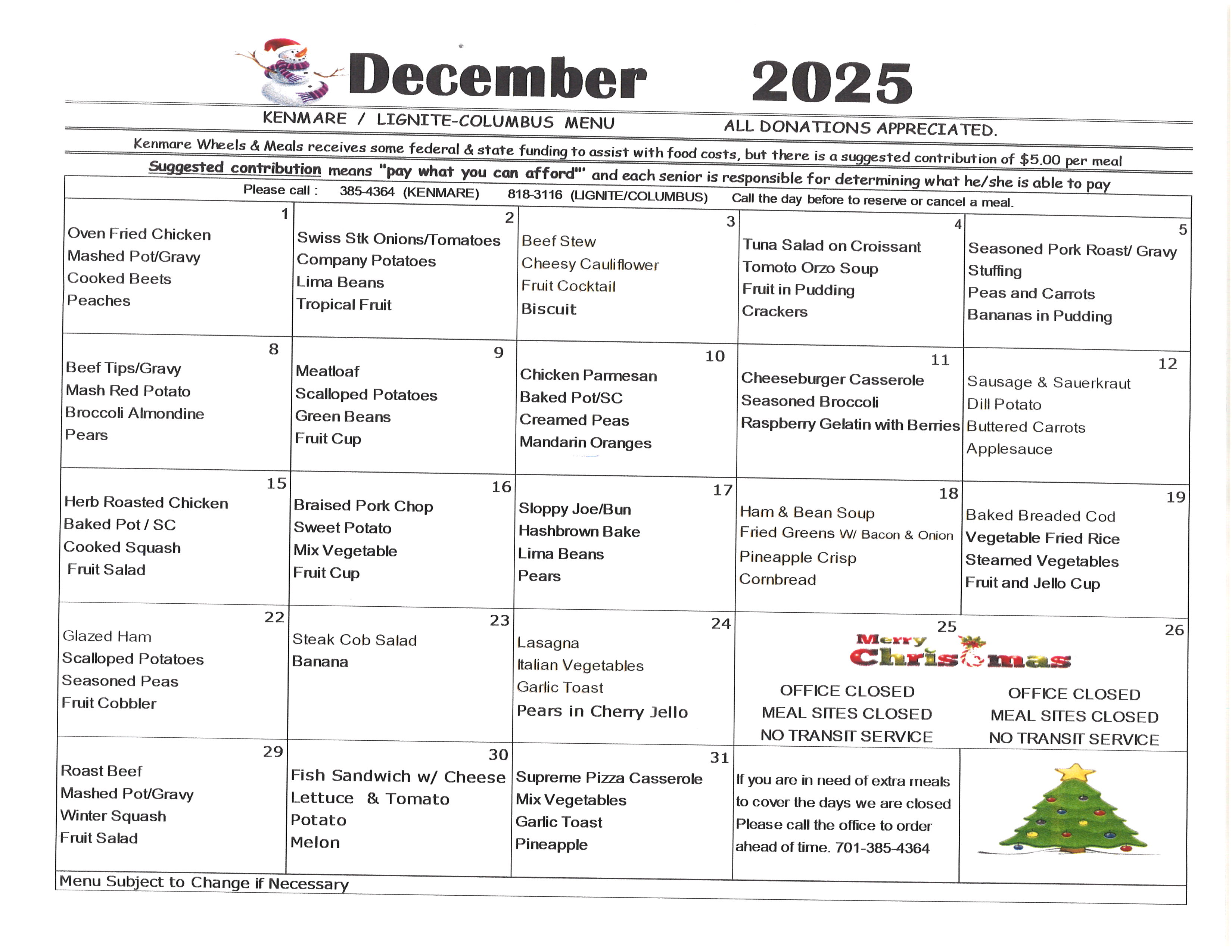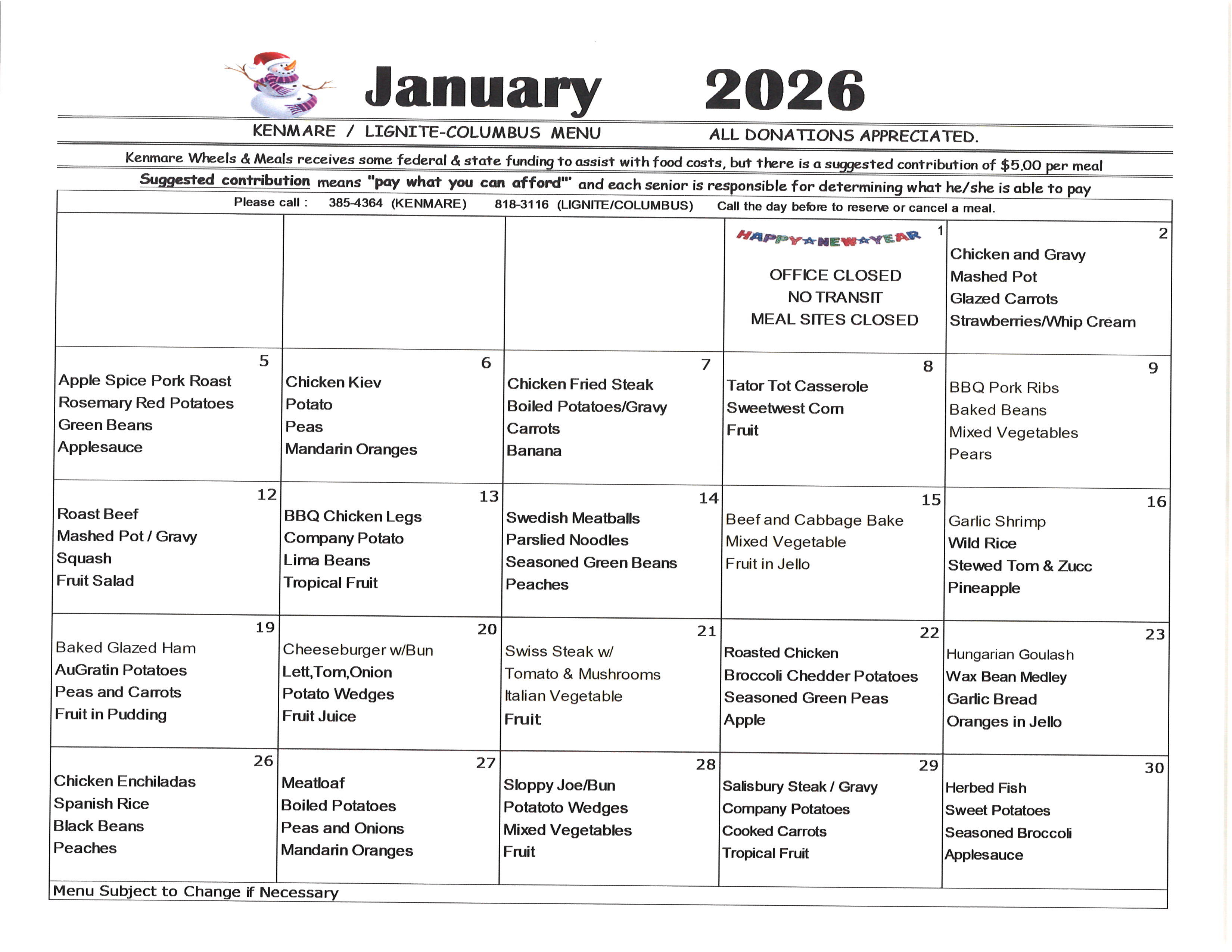Each person is responsible to determine what they are able to contribute. Suggested Donation is $4.00. You need not belong to a senior citizen’s club to pa rticipate, but local clubs help support our program so your support of them is encouraged. Please keep in mind that advance reservations are required for all services. Please make reservations the day before you wish to receive the service.